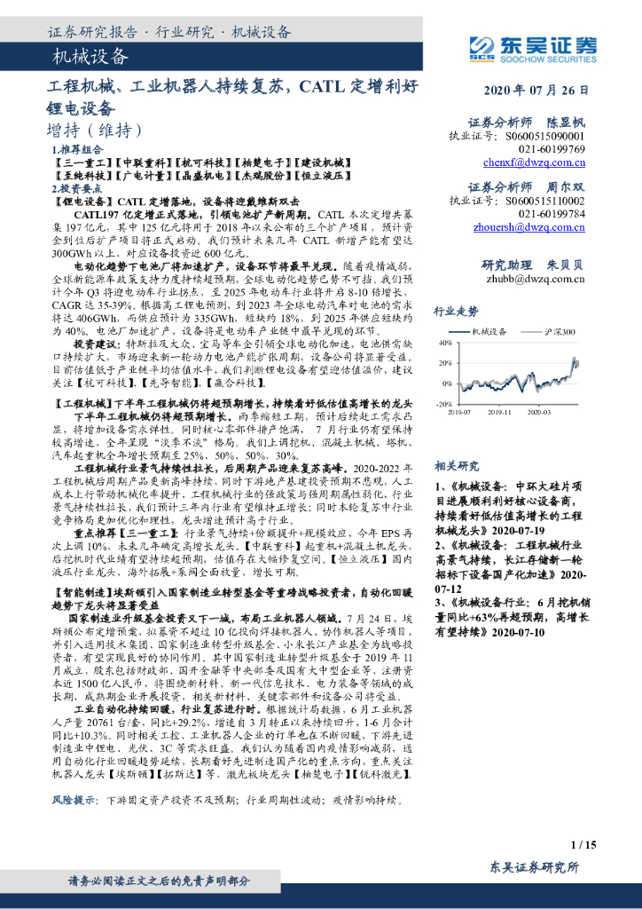 东吴证券:机械设备:工程机械、工业机器人持续复苏,CATL定增利好锂电设备.pdf