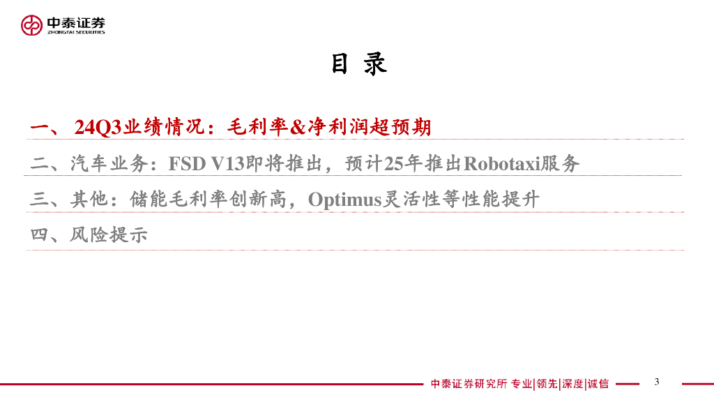 中泰证券:【中泰电子】AI全视角-科技大厂财报专题|特斯拉24Q3点评:盈利超预期,关注新车&Robotaxi等进展.pdf