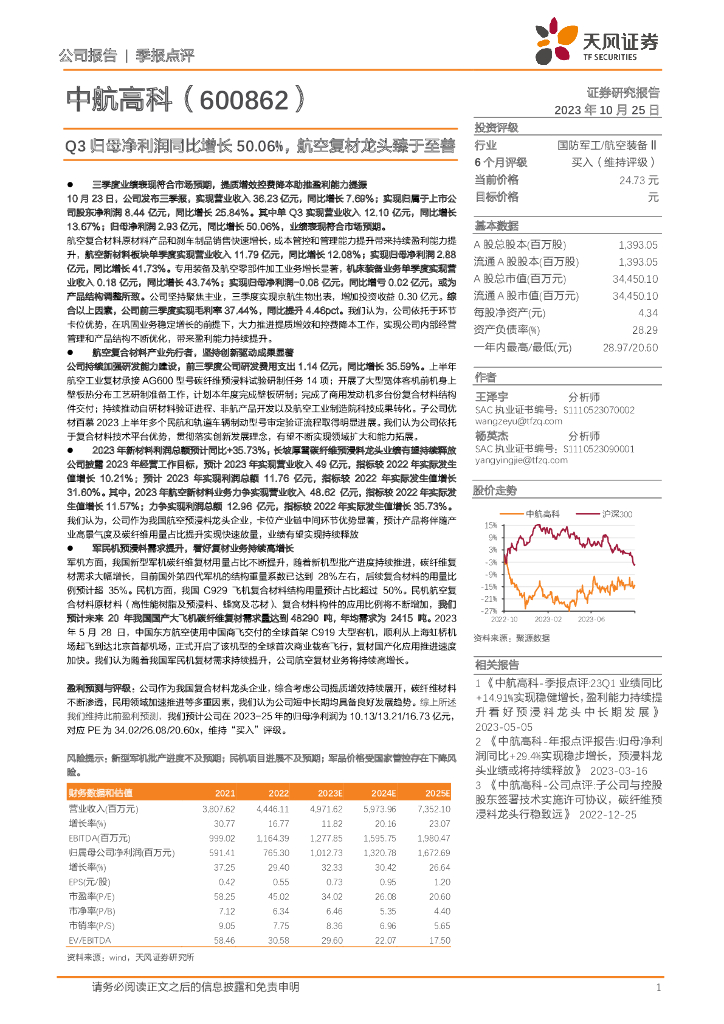 天风证券:中航高科(600862)-Q3归母净利润同比增长50.06%,航空复材龙头臻于至善.pdf