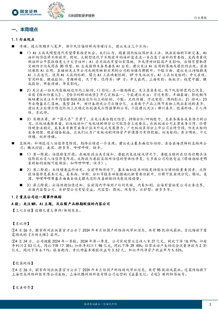 国金证券:传媒互联网产业行业研究:业绩步入尾声,关注传媒板块;及基本面边际向好互联网公司.pdf