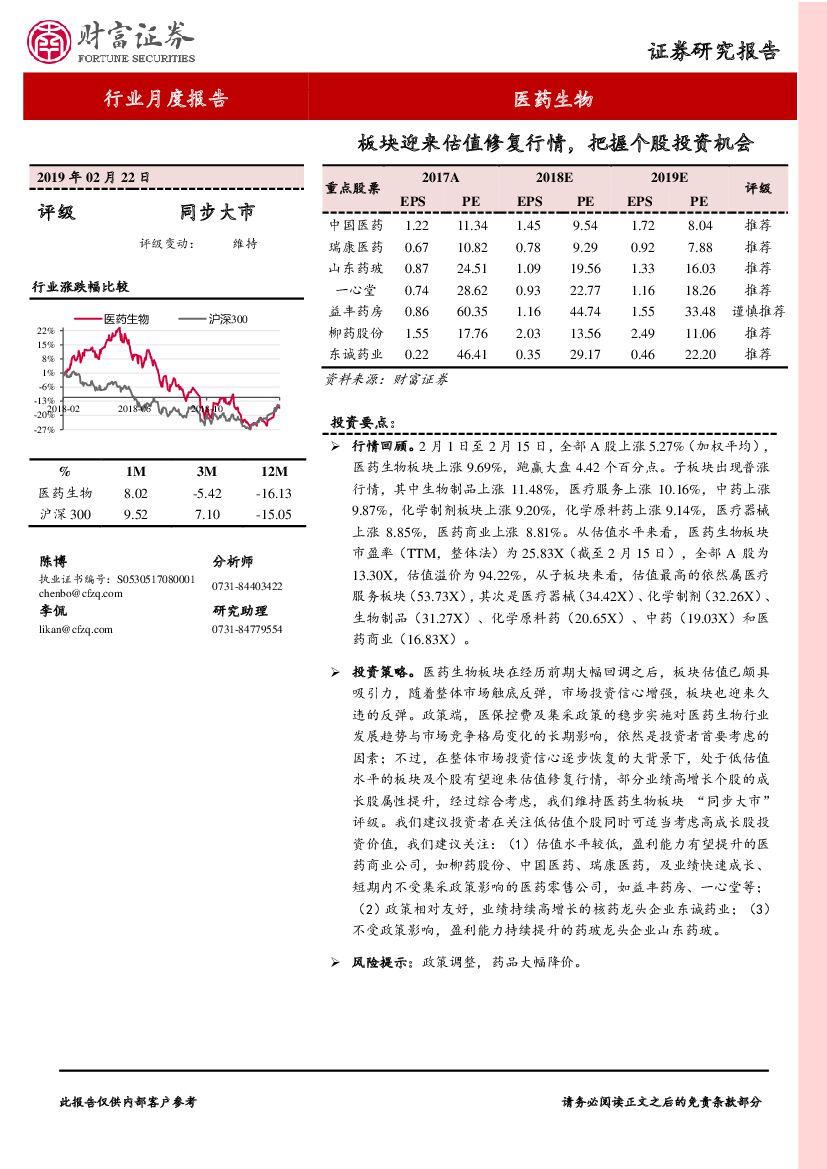 财富证券:医药生物行业月度报告:板块迎来估值修复行情,把握个股投资机会.pdf