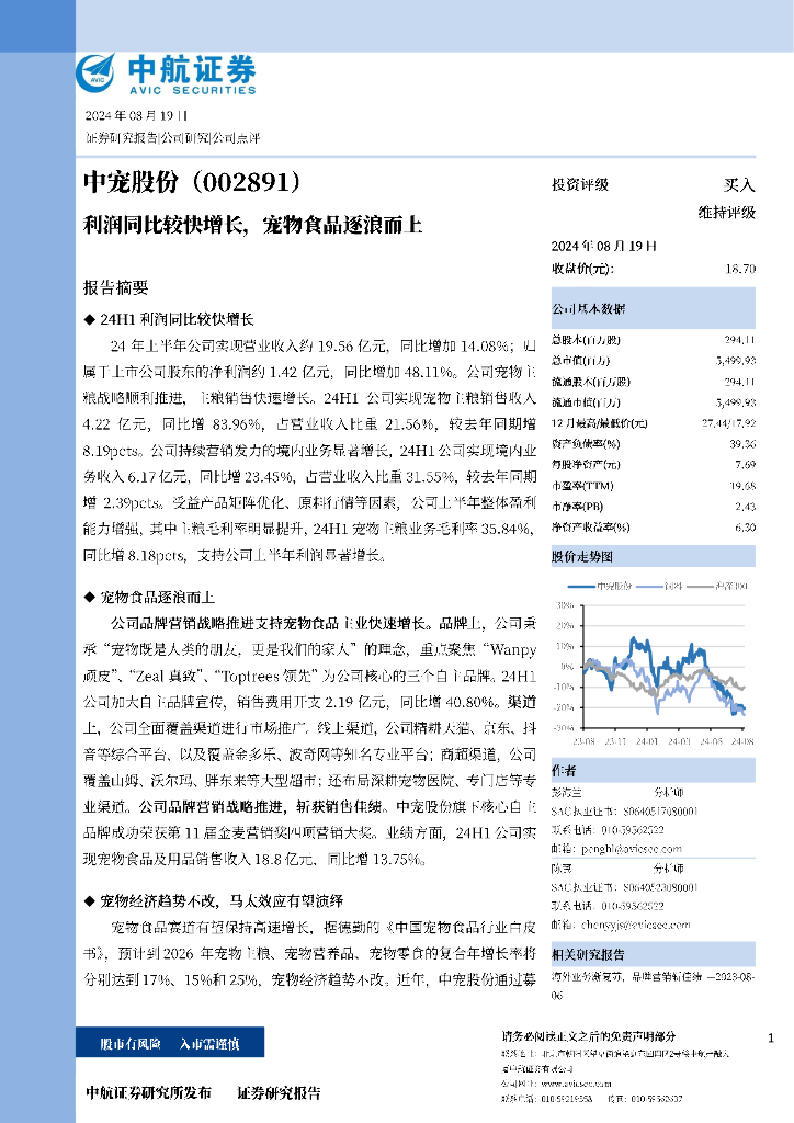 中航证券:中宠股份(002891)-利润同比较快增长,宠物食品逐浪而上.pdf