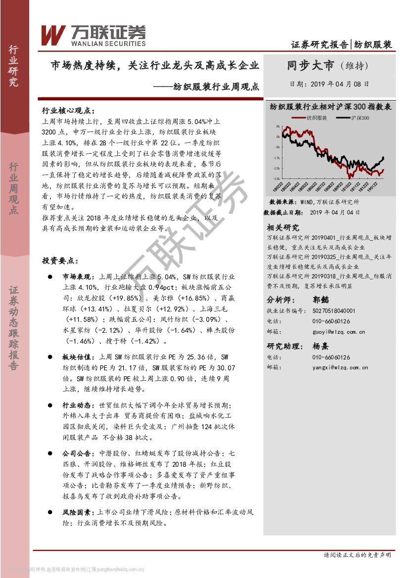 万联证券:纺织服装行业周观点:市场热度持续,关注行业龙头及高成长企业.pdf