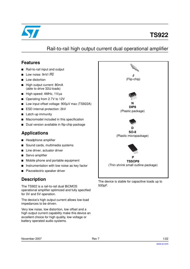 STMICROELECTRONICS TS922 数据手册.pdf