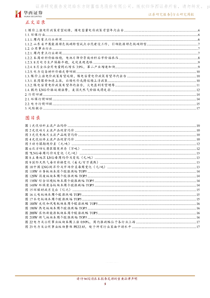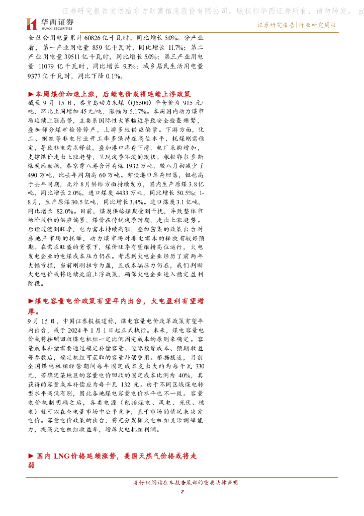 华西证券:环保、公用事业行业周报:煤价上涨电价政策有望延续,煤电容量电价政策有望年内出台.pdf
