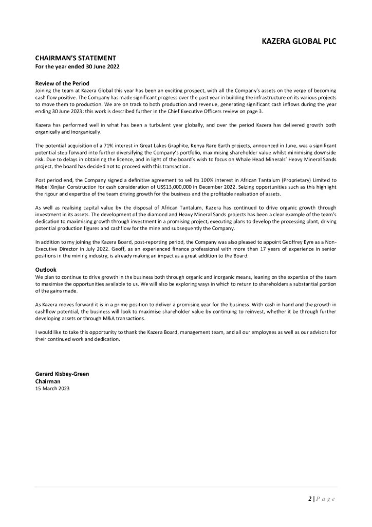 Kazera Global plc(KZG)2022财年年度报告(英文版).pdf