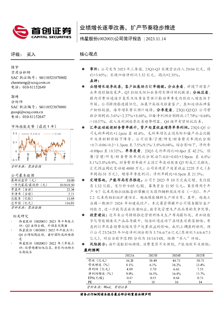 首创证券:伟星股份(002003)-公司简评报告:业绩增长逐季改善,扩产节奏稳步推进.pdf