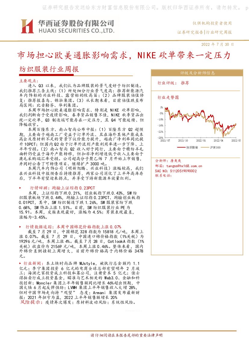 华西证券:纺织服装行业周报:市场担心欧美通胀影响需求,NIKE砍单带来一定压力.pdf