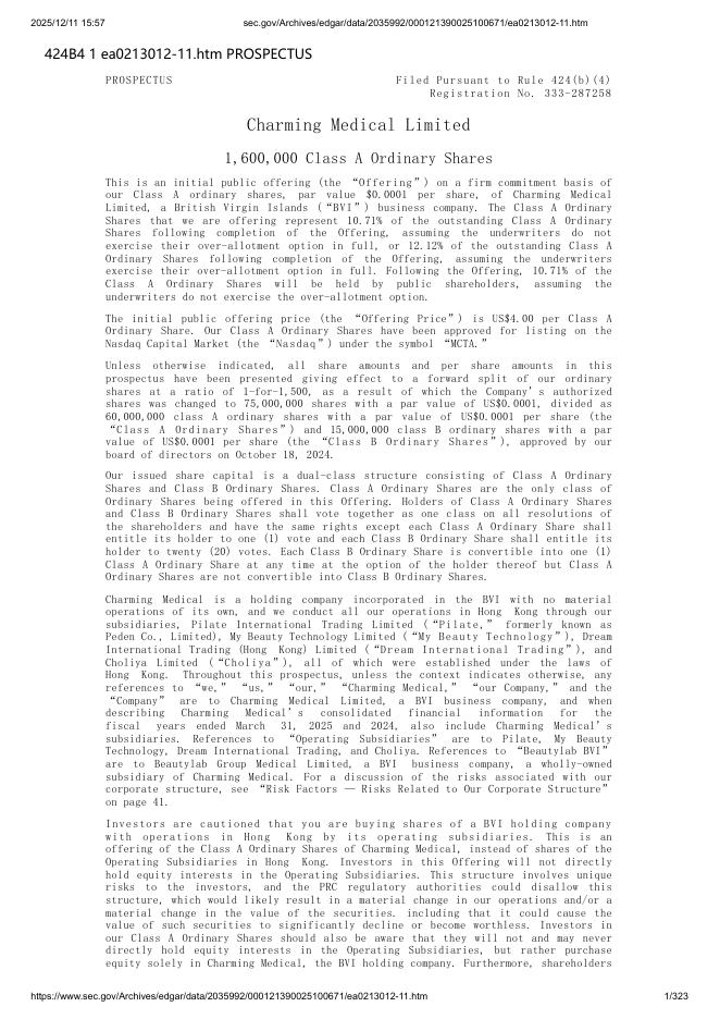 Charming Medical Limited美股纳斯达克IPO上市招股说明书.pdf