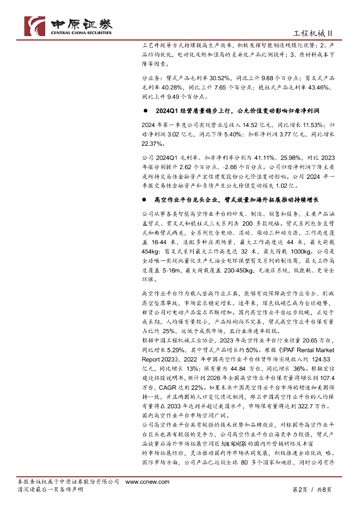 中原证券:浙江鼎力(603338)-2023年报&2024一季报点评:臂式产品放量推动增长,出海市场空间广阔.pdf