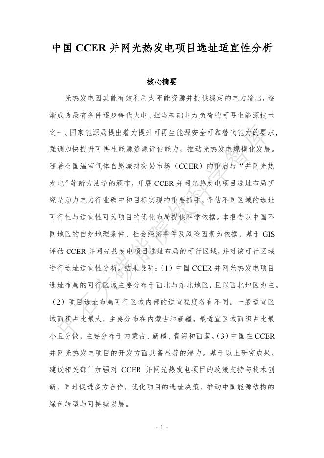 中国石油大学:2024年迈向“双碳”研究系列报告-中国CCER并网光热发电项目选址适宜性分析.pdf