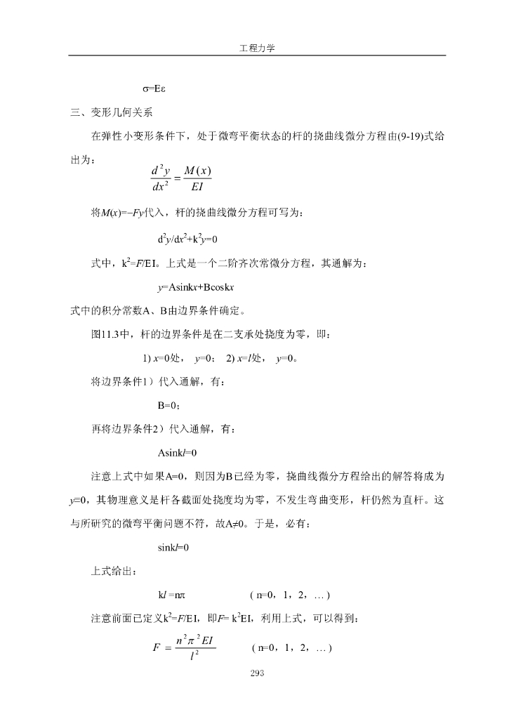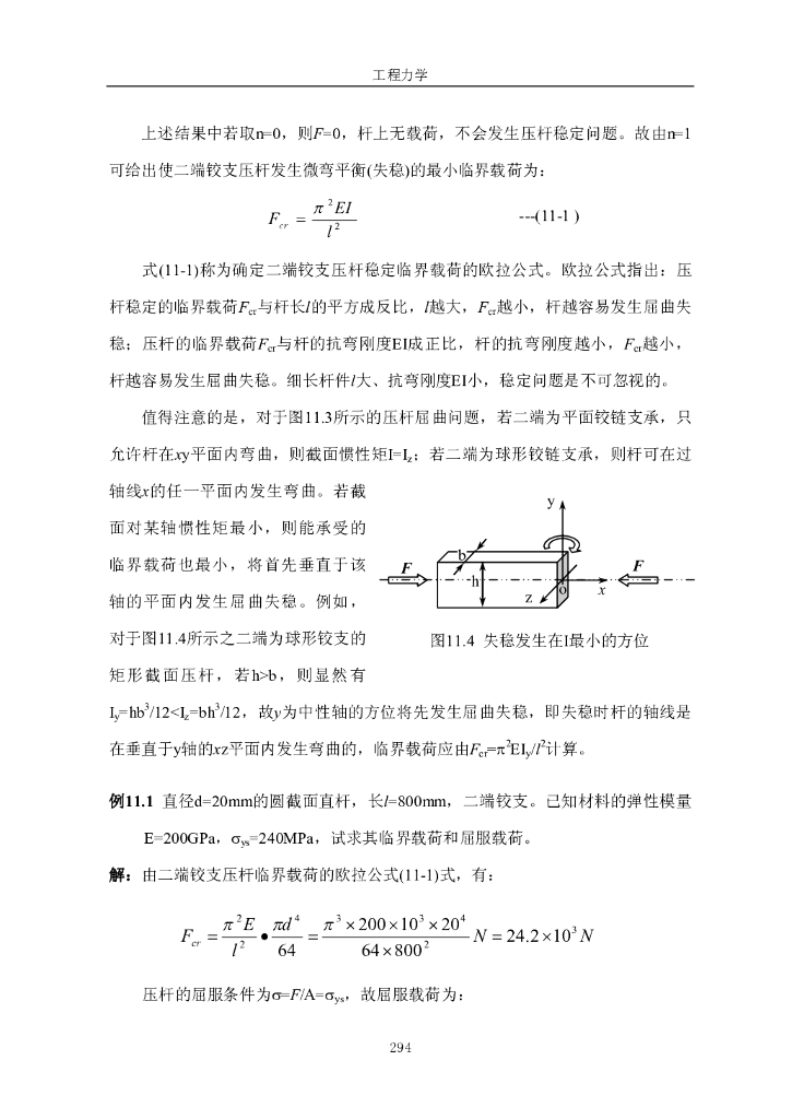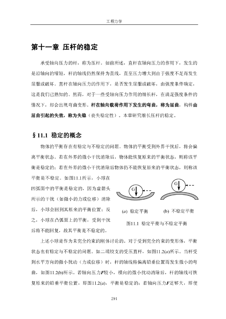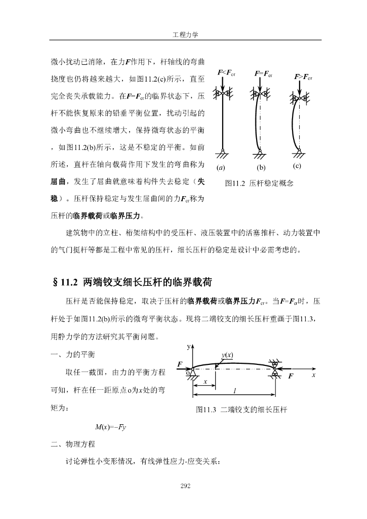 《工程力学》电子教材-第一节 稳定的概念,两端铰支细长压杆的临界载荷.pdf