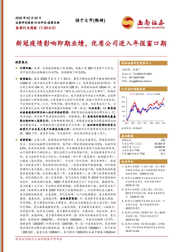西南证券:医药行业周报:新冠疫情影响即期业绩,优质公司进入年报窗口期.pdf