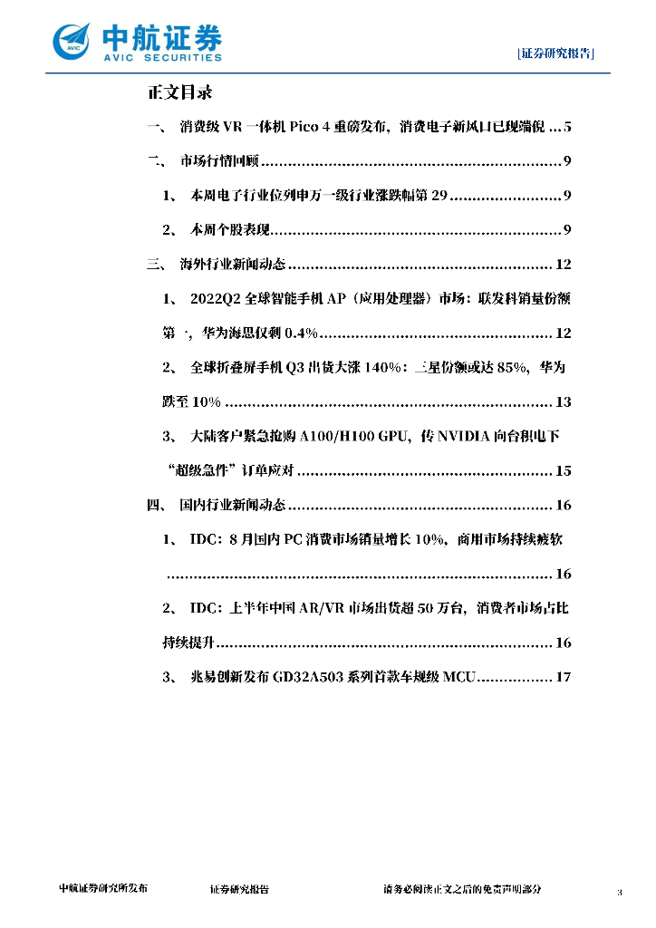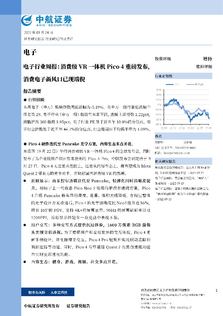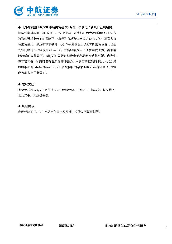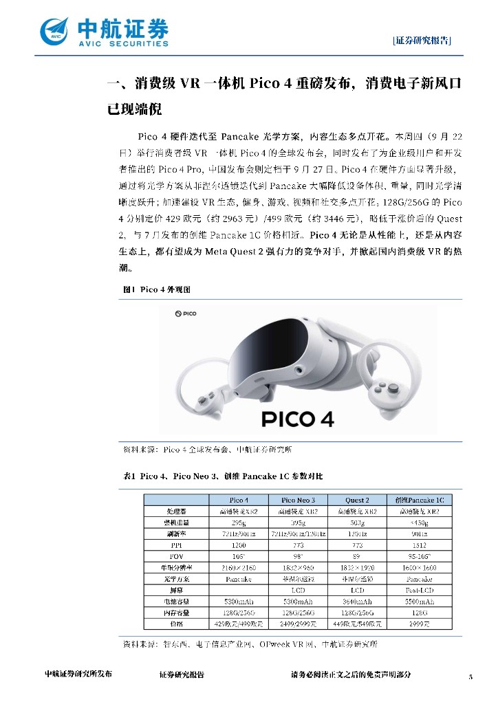 中航证券:电子行业周报:消费级VR一体机PICO 4重磅发布,消费电子新风口已现端倪.pdf