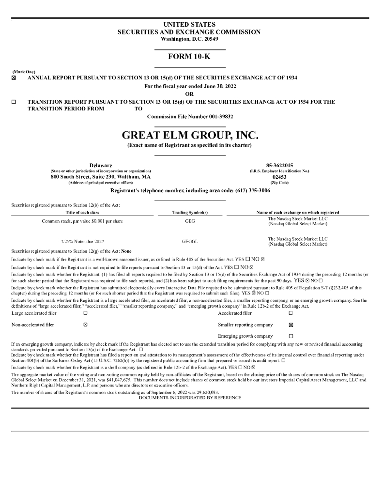 Great Elm Group, Inc.(GEG)2022财年年度报告(英文版).pdf