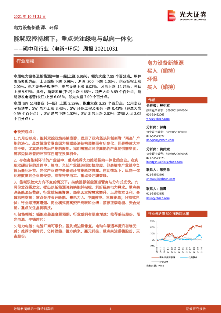 光大证券:碳中和行业(电新+环保)周报:能耗双控持续下,重点关注绿电与纵向一体化.pdf