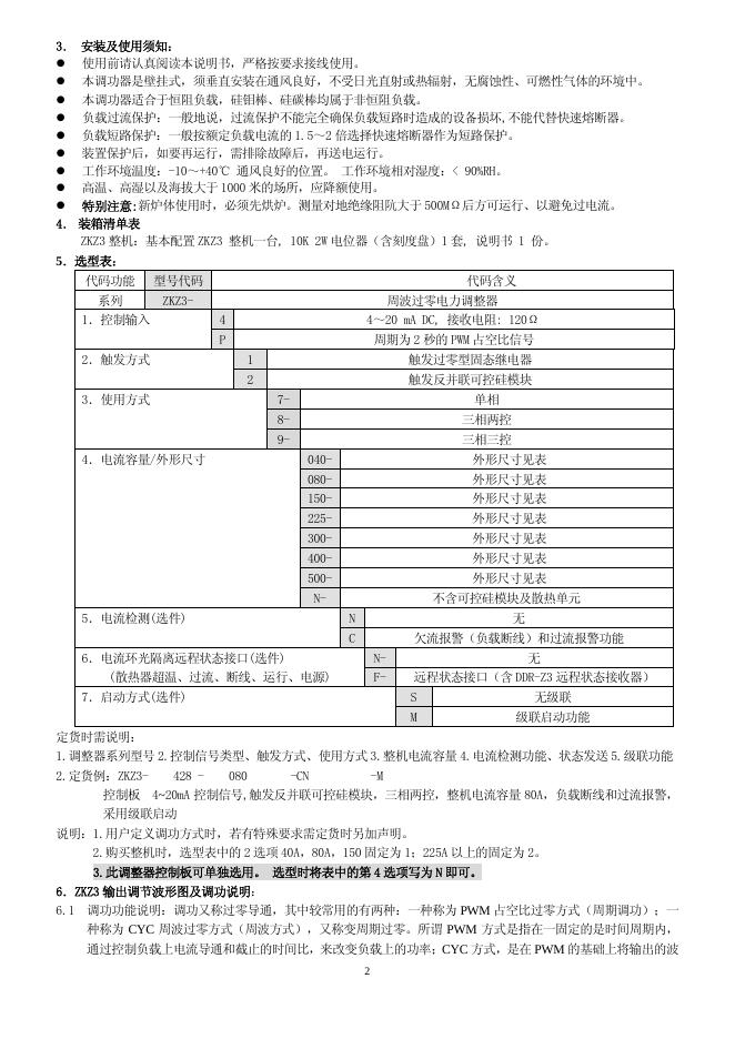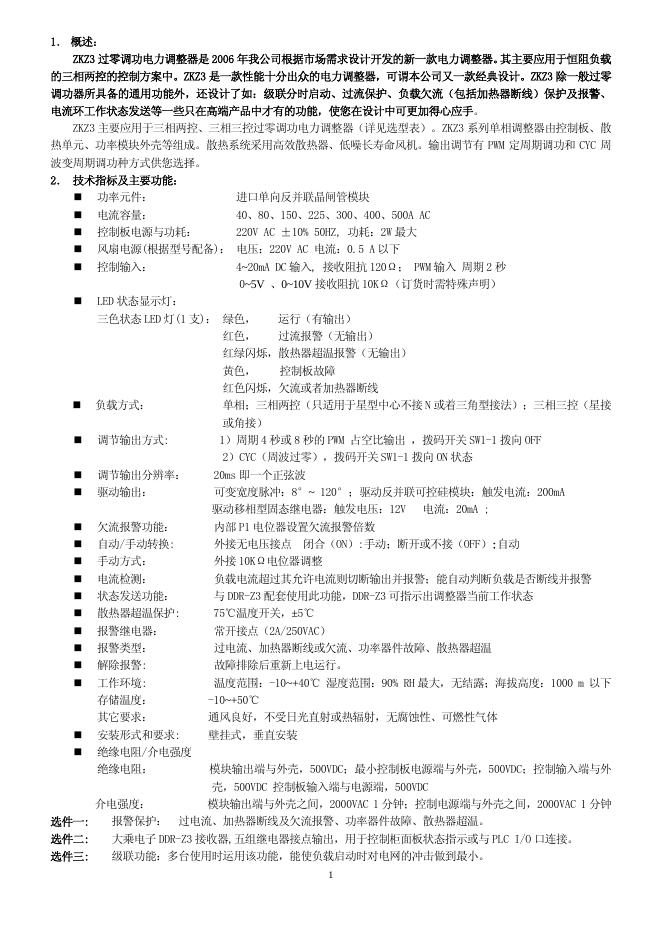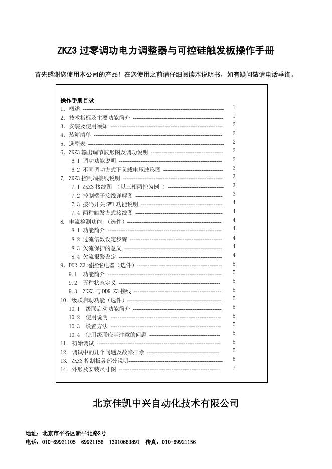 北京佳凯中兴自动化技术有限公司 ZKZ3 过零调功电力调整器与可控硅触发板 操作手册.pdf
