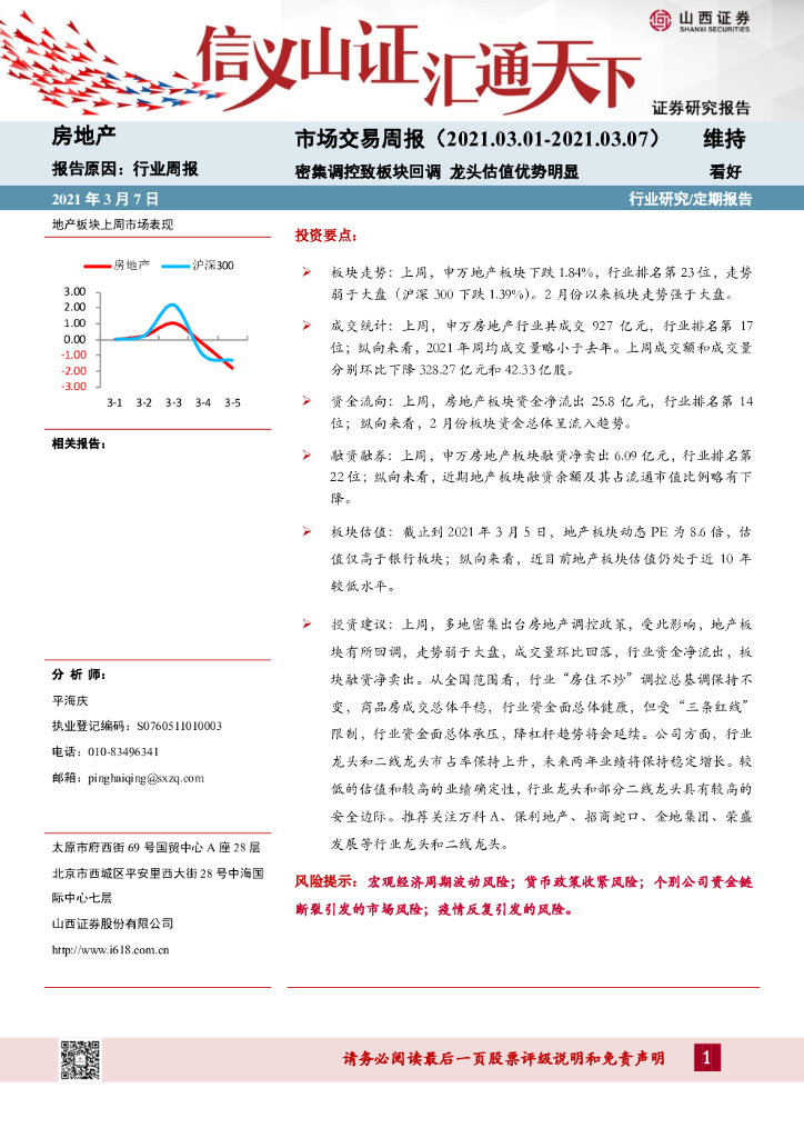 山西证券:房地产市场交易周报:密集调控致板块回调 龙头估值优势明显.pdf