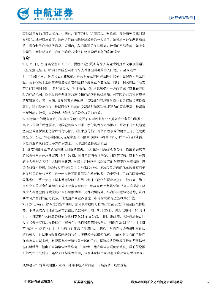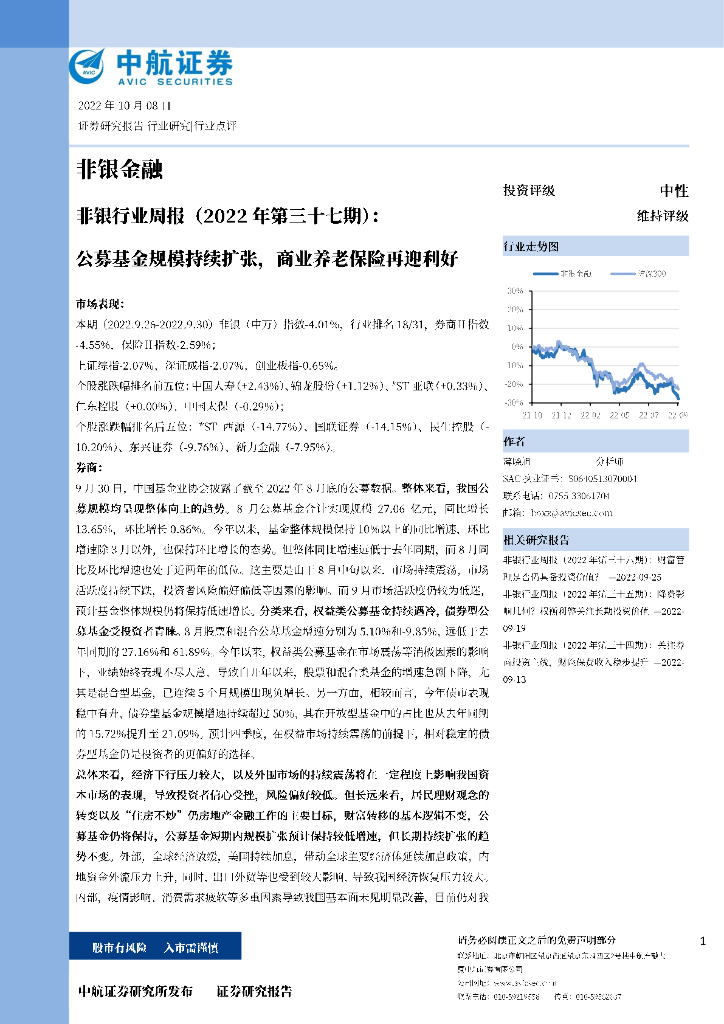 中航证券:非银行业周报(2022年第三十七期):公募基金规模持续扩张,商业养老保险再迎利好.pdf