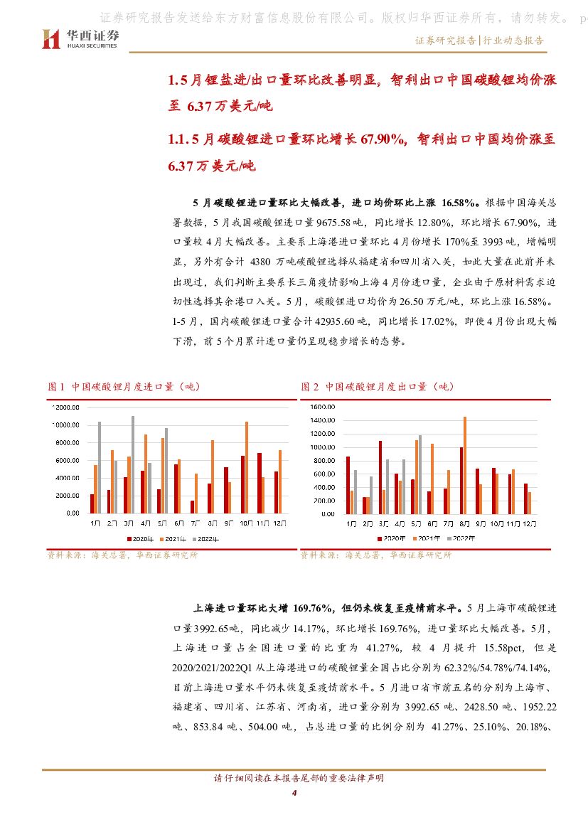 华西证券:公用事业行业动态报告:5月锂盐进/出口量环比改善明显,智利出口中国碳酸锂均价涨至6.37万美元/吨.pdf