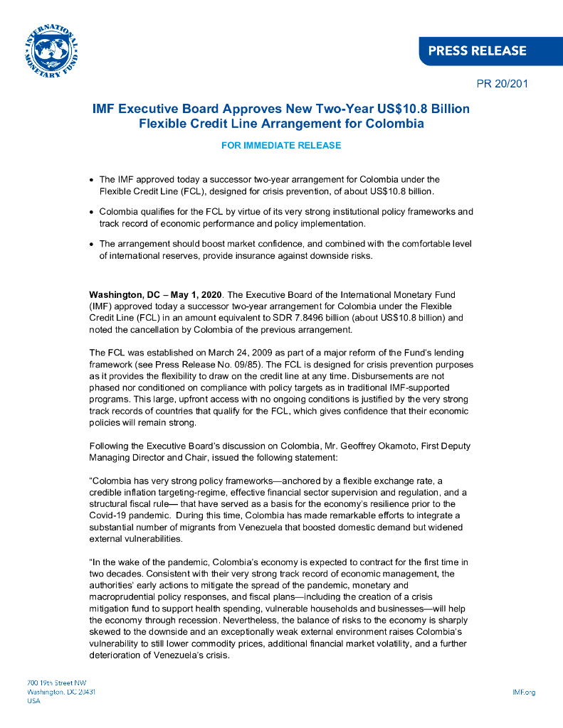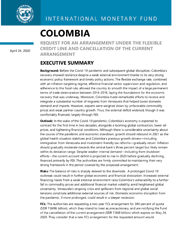 国际货币基金组织:2024哥伦比亚:关于根据灵活信贷额度作出安排和取消现行安排的请求新闻稿员工报告(英文版).pdf