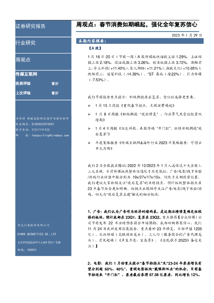 信达证券:传媒互联网及海外周观点:春节消费如期崛起,强化全年复苏信心.pdf