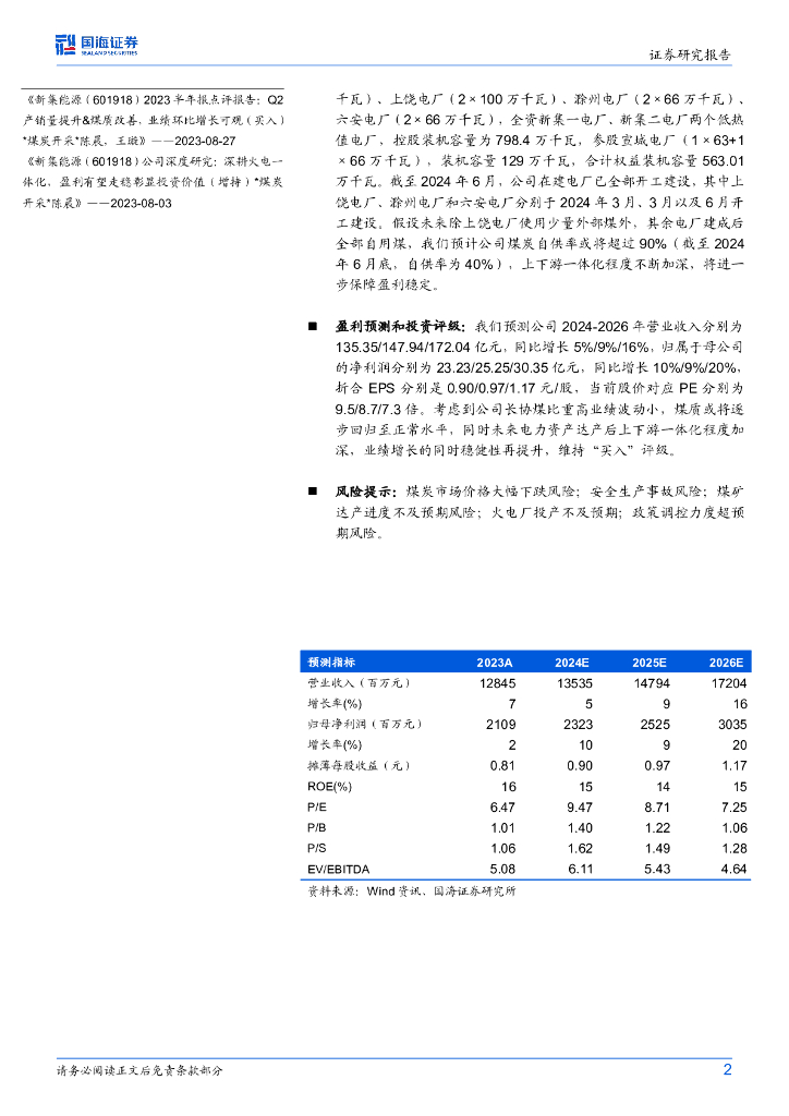 国海证券:新集能源(601918)-2024年半年报点评:在建电厂全部开工建设,煤电一体化进程加快.pdf