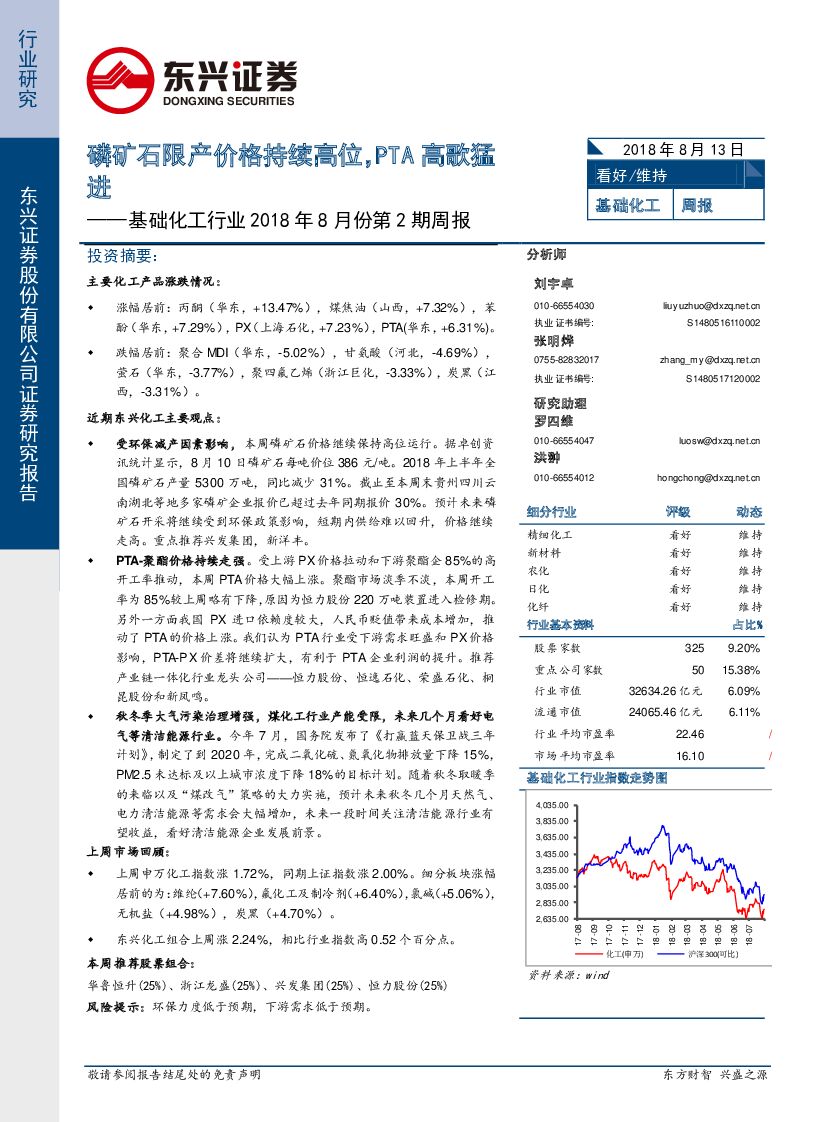 东兴证券:基础化工行业2018年8月份第2期周报:磷矿石限产价格持续高位,PTA高歌猛进.pdf