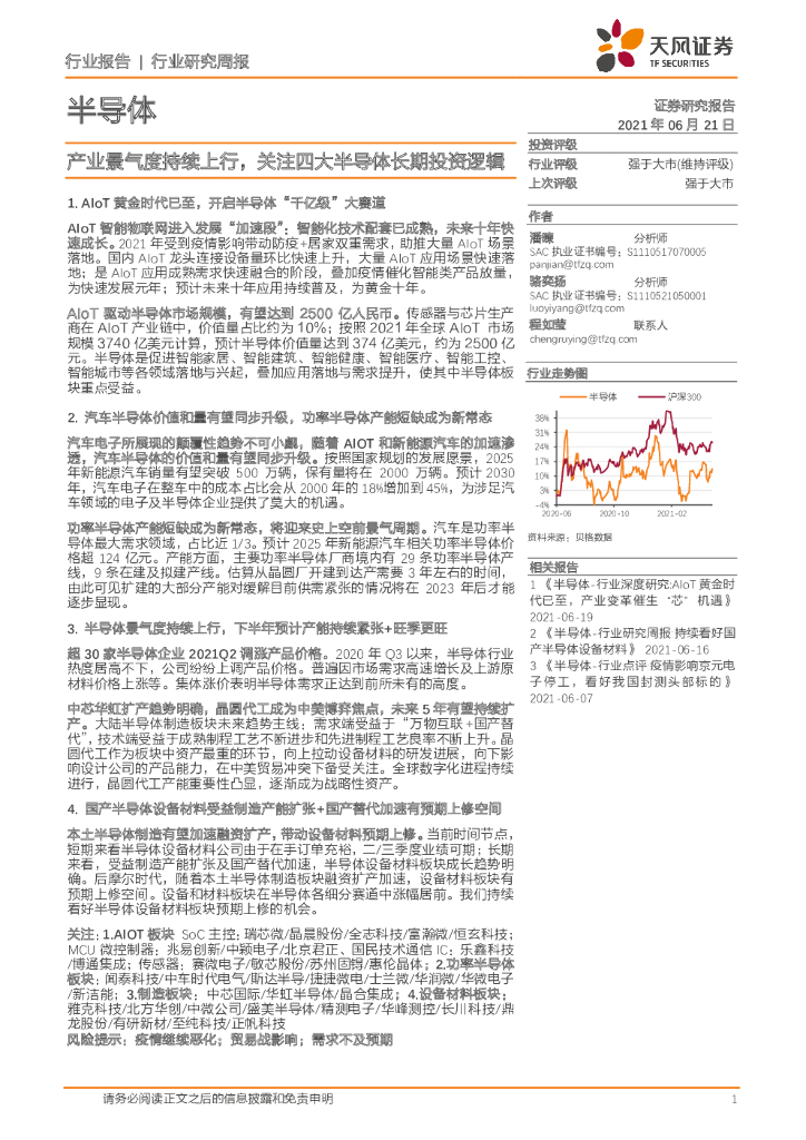 天风证券:半导体行业研究周报:产业景气度持续上行,关注四大半导体长期投资逻辑.pdf