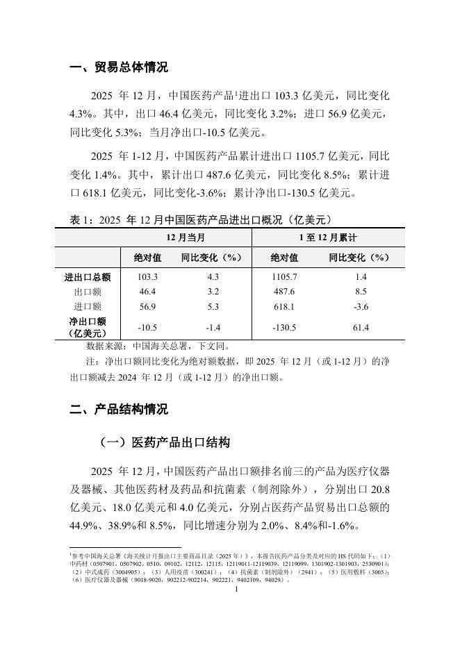 对外经济贸易大学:中国医药产品贸易月度监测报告(2025年1-12月).pdf