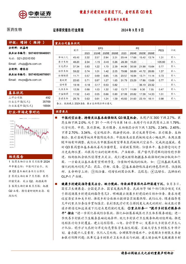 中泰证券:医药生物行业周报:健康乡村建设助力渠道下沉,看好医药Q3修复.pdf