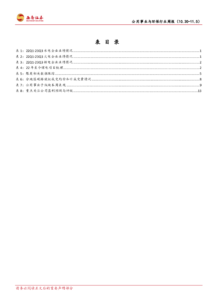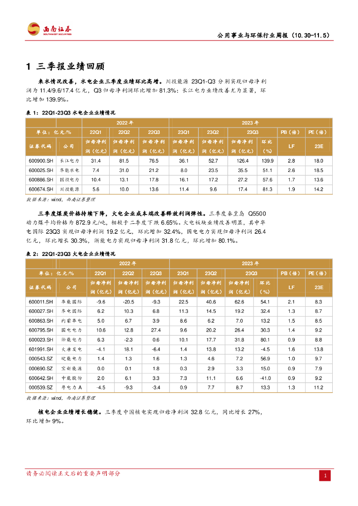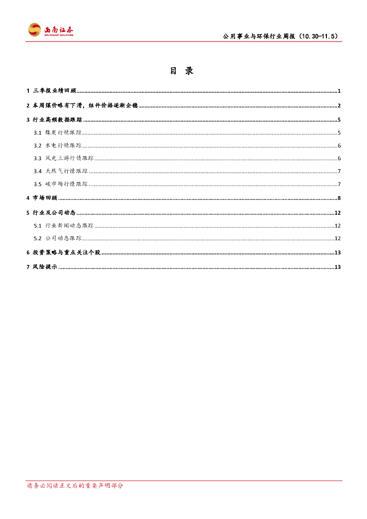 西南证券:公用事业与环保行业周报:火电业绩修复超预期,煤价持续回落.pdf