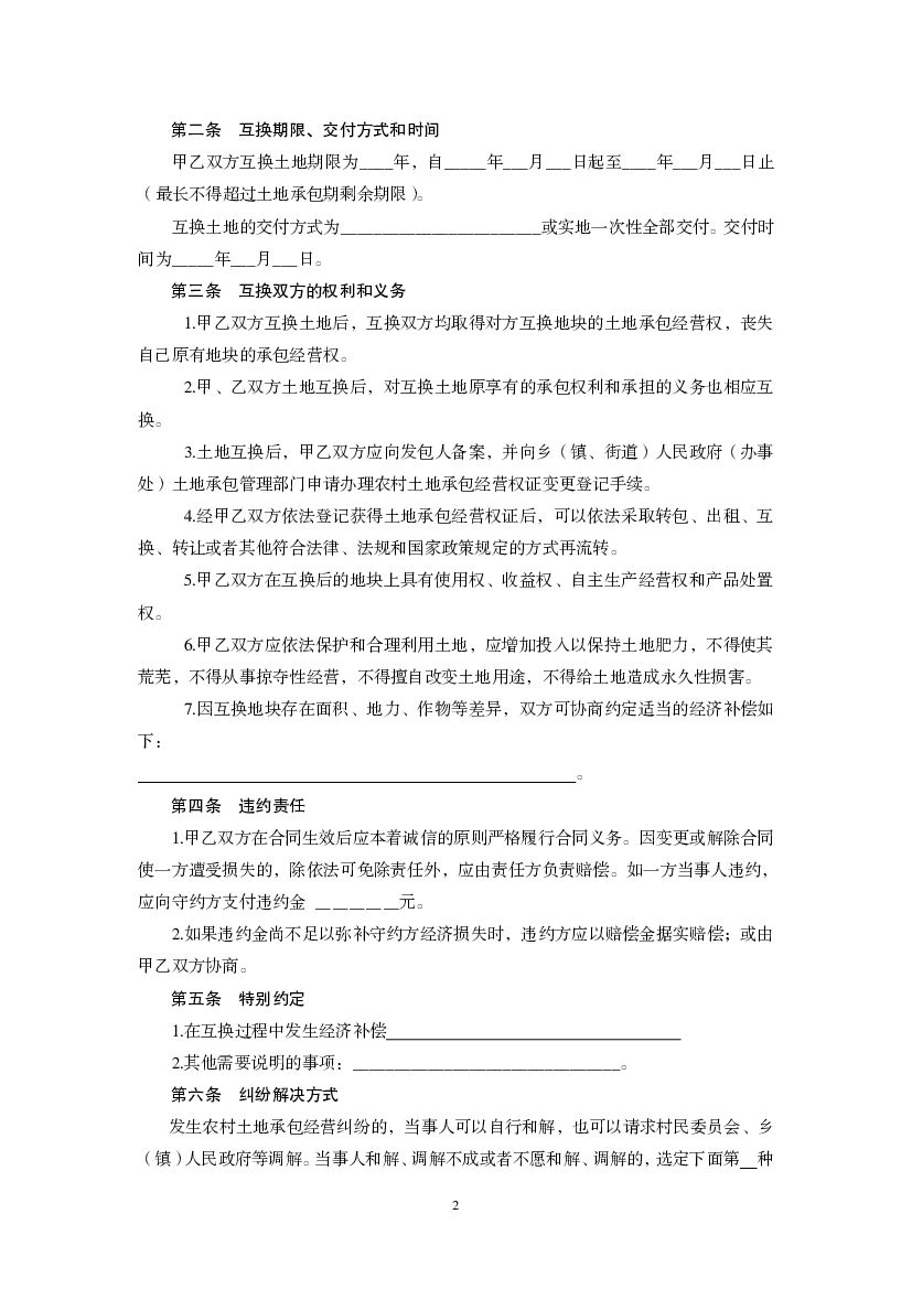 JF-2014-025 天津市农村土地承包经营权互换合同.pdf