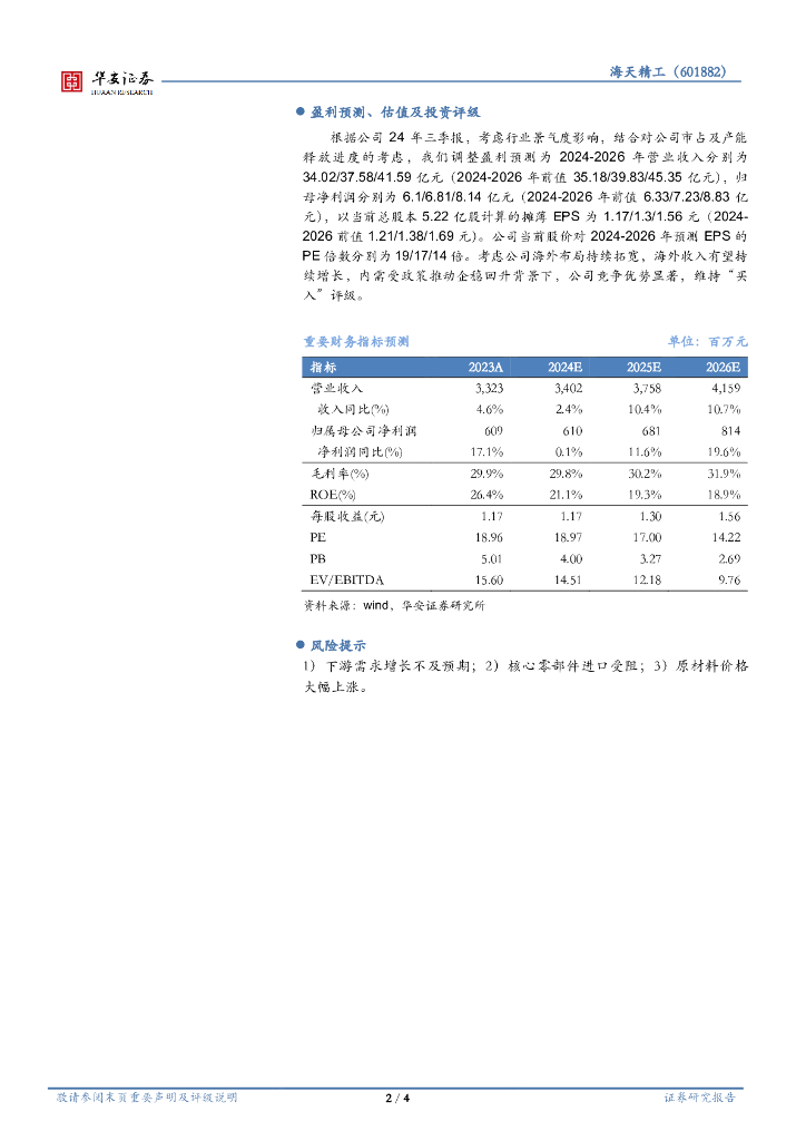 华安证券:海天精工(601882)-24三季报点评:行业磨底期Q3承压,持续扩大研发长期布局.pdf