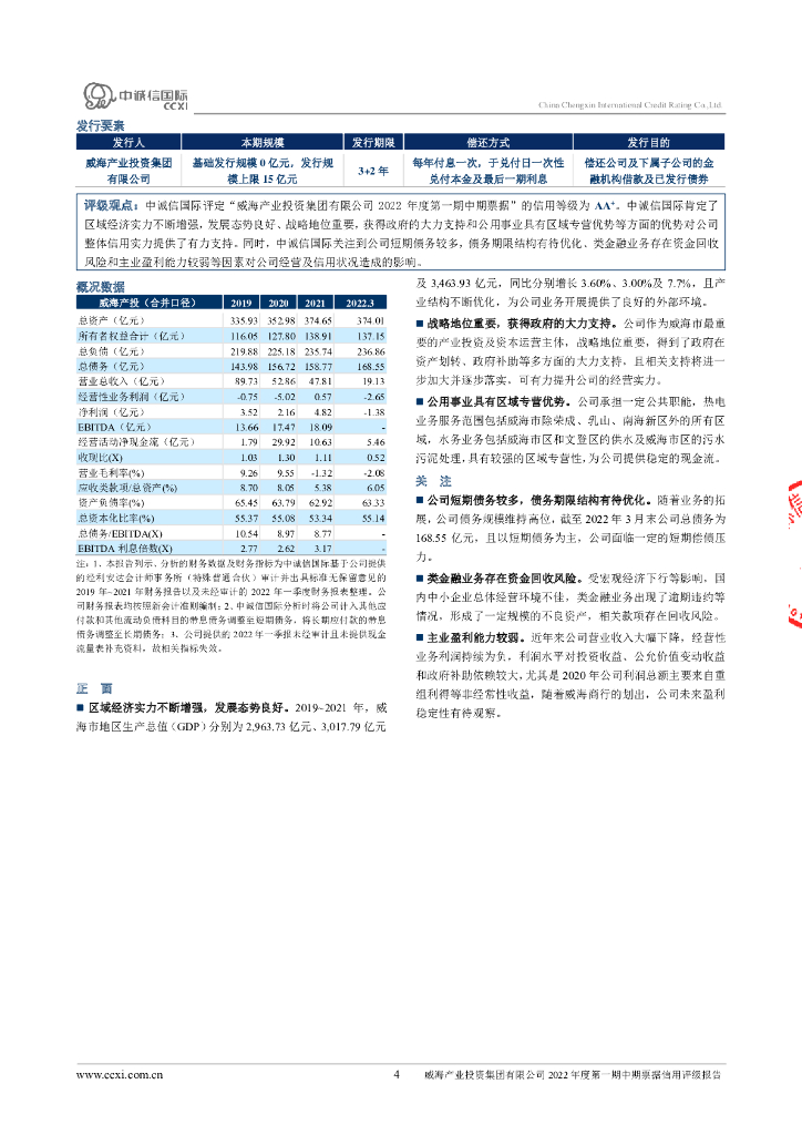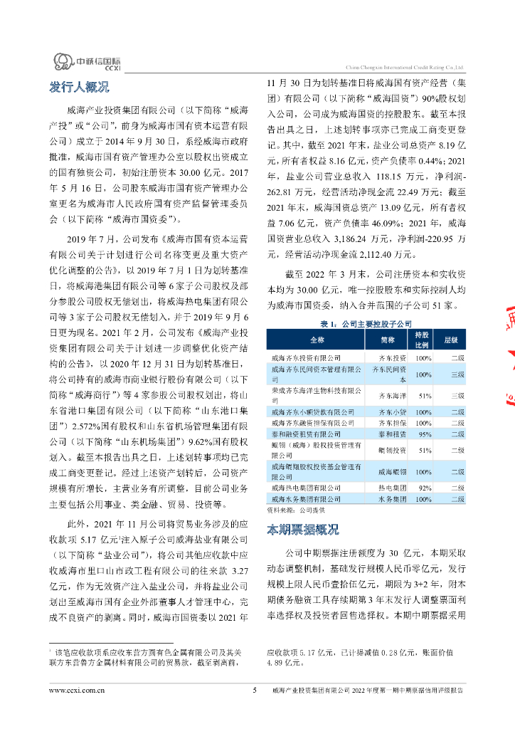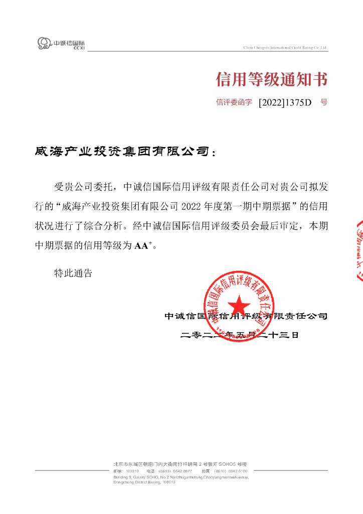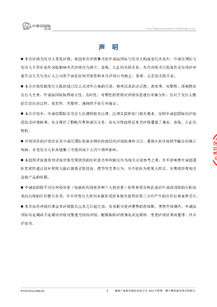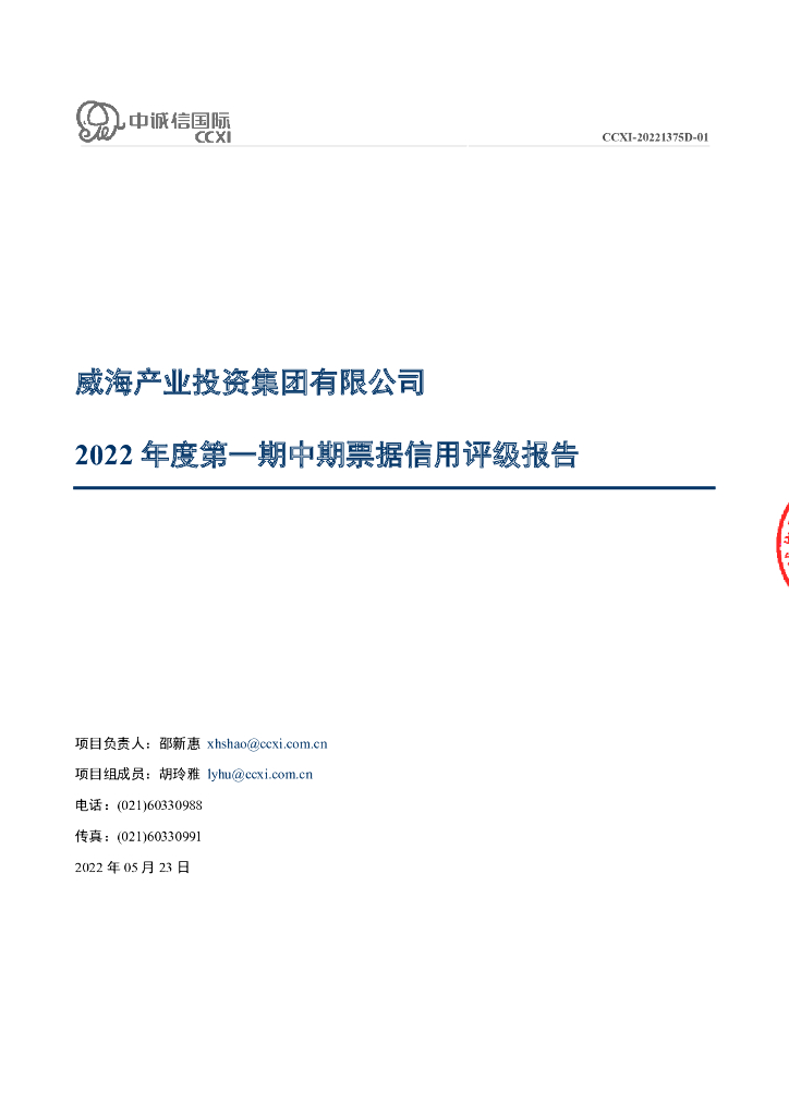 中诚信:威海产业投资集团有限公司2022年度第一期中期票据信用评级报告.pdf