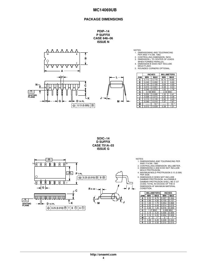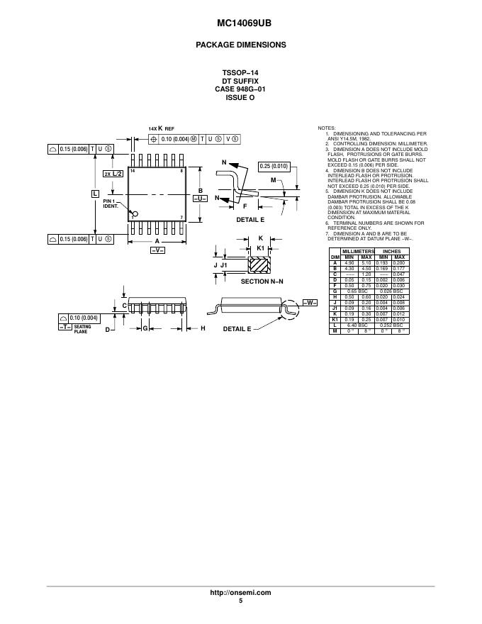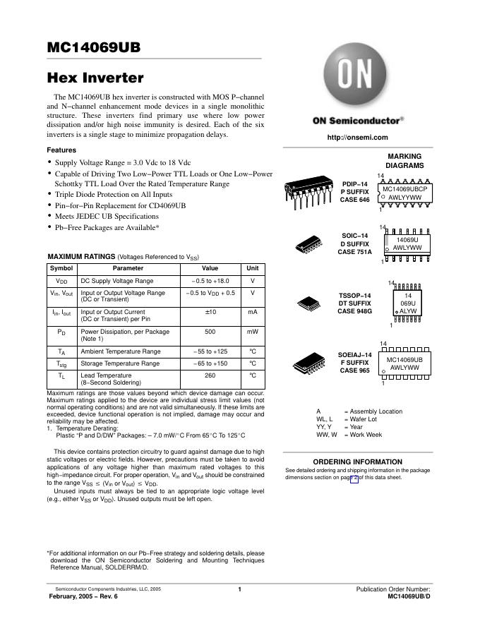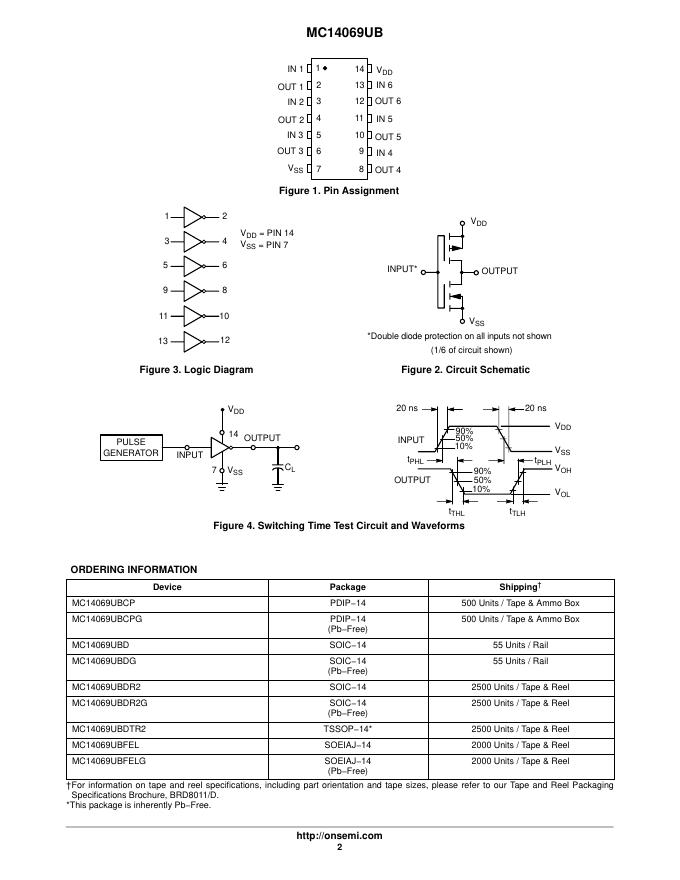 ON SEMICONDUCTOR MC14069UB Hex Inverter 数据手册.pdf