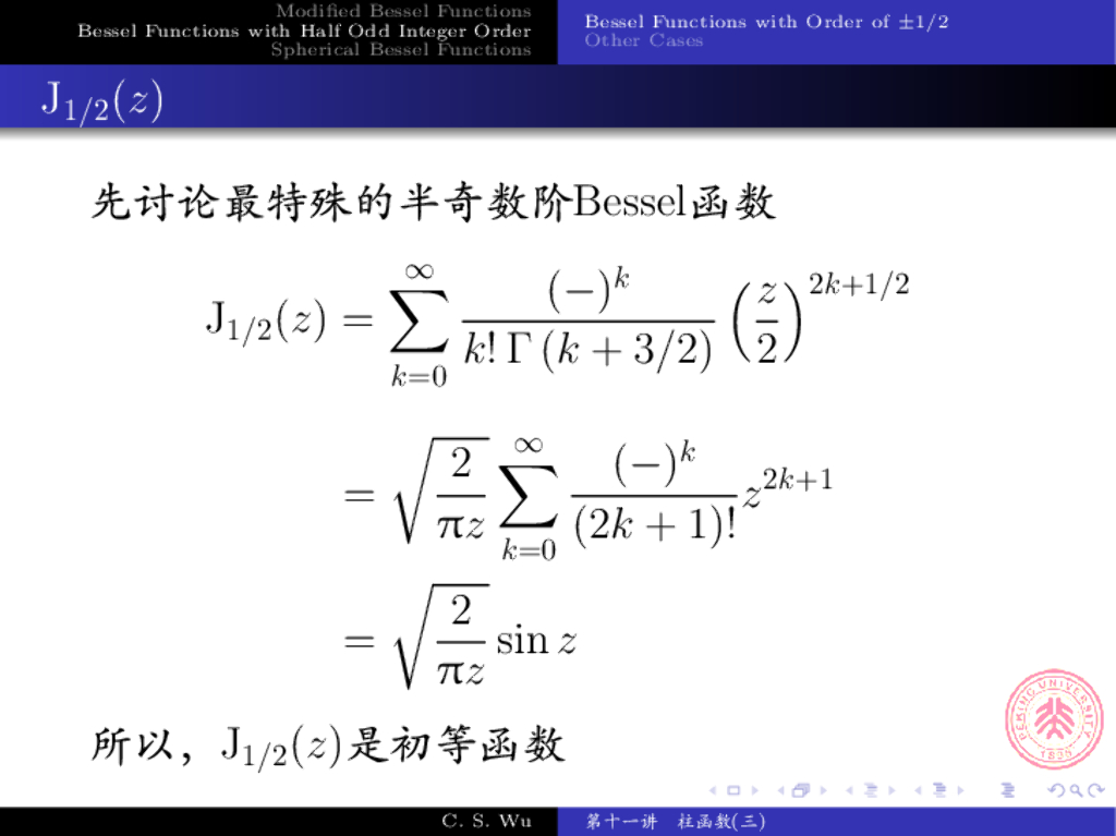 《数学物理方法》演示文稿-半奇数阶贝塞耳函数、球贝塞耳函数.pdf