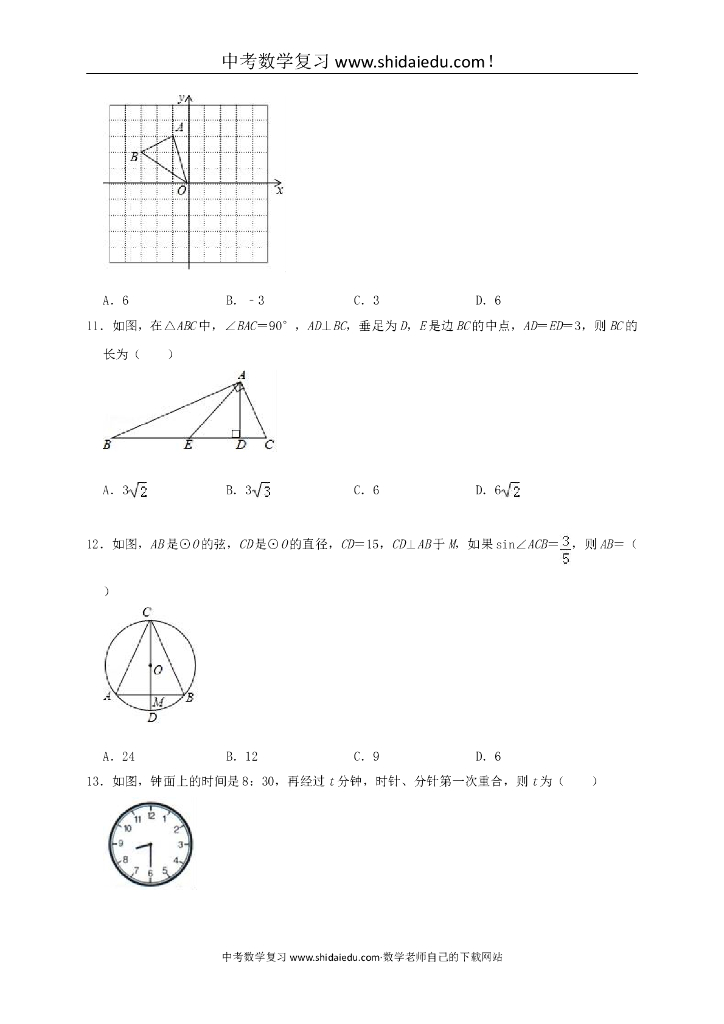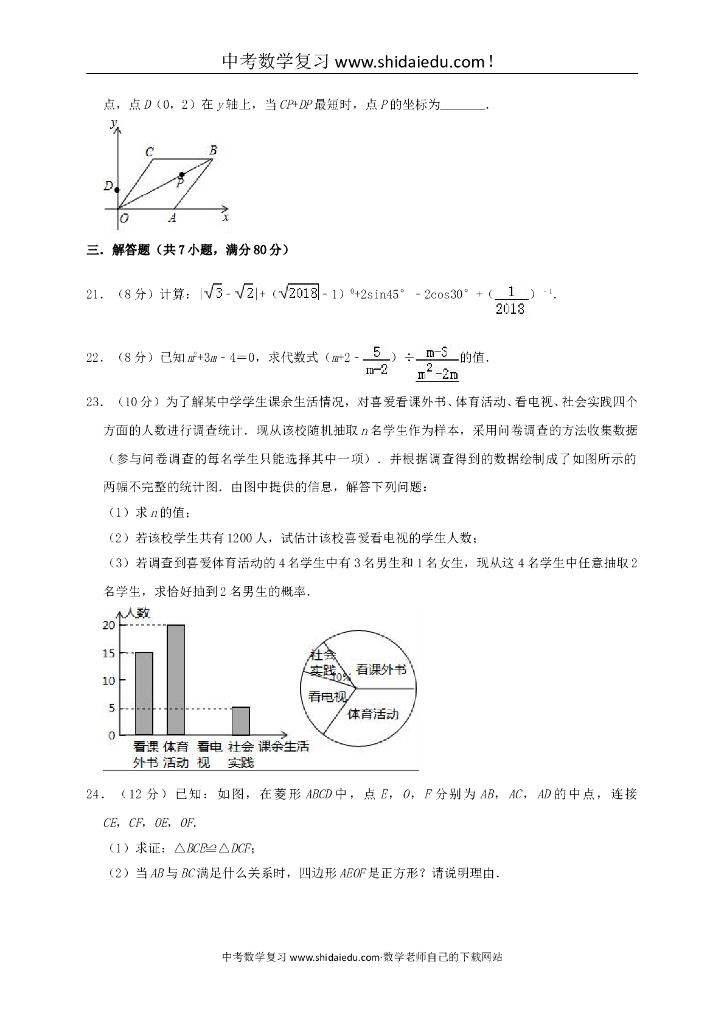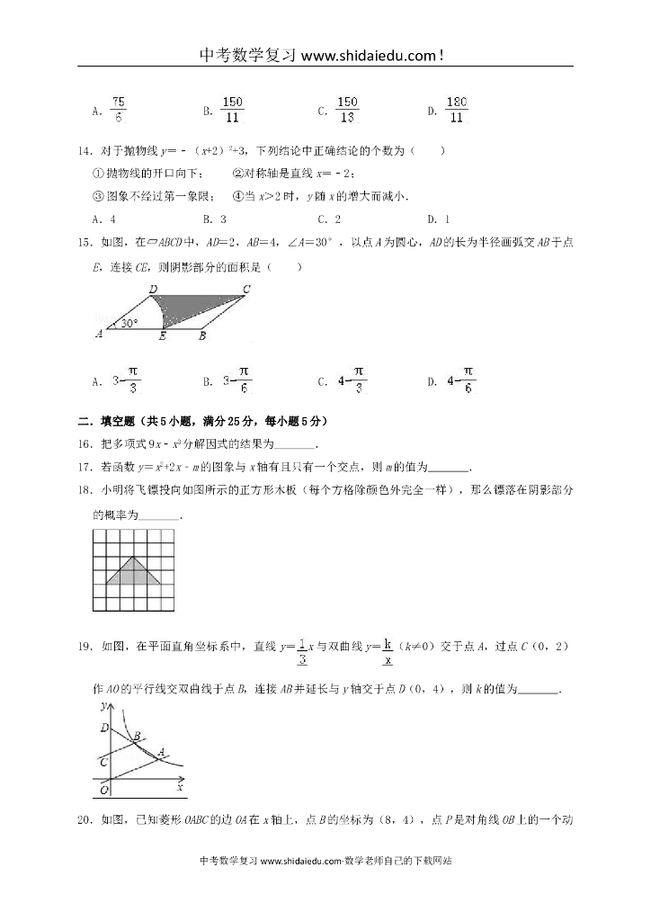 贵州省毕节市织金县猫场中学中考数学模拟(4月)试卷(含解析).doc