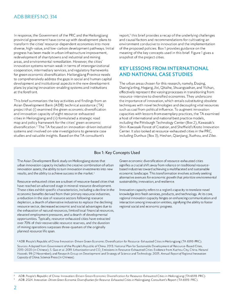 ADB亚洲开发银行:2024年黑龙江省资源枯竭型城市创新驱动的绿色经济多元化报告(英文版).pdf