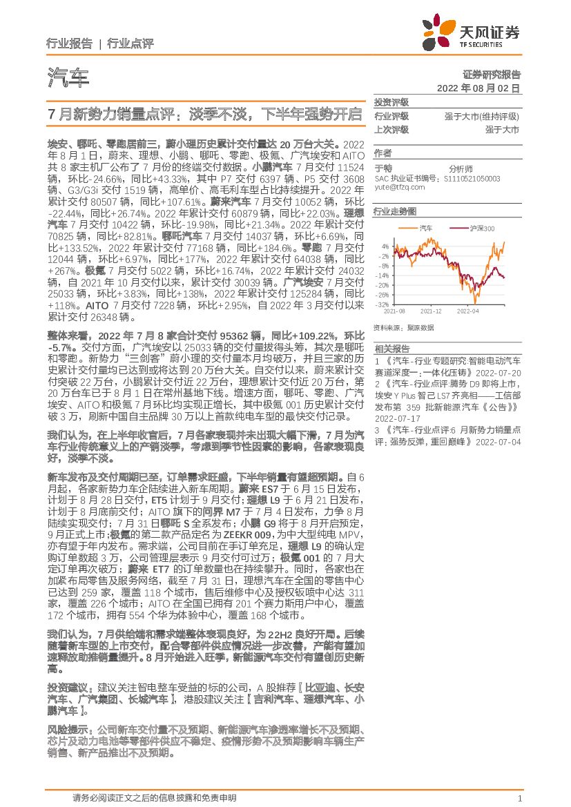 天风证券:汽车:7月新势力销量点评:淡季不淡,下半年强势开启.pdf