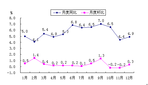图2 2011年居民消费价格月度涨跌幅度