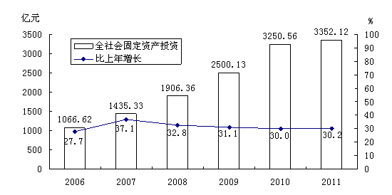 图5 2006-2011年全社会固定资产投资及其增长速度