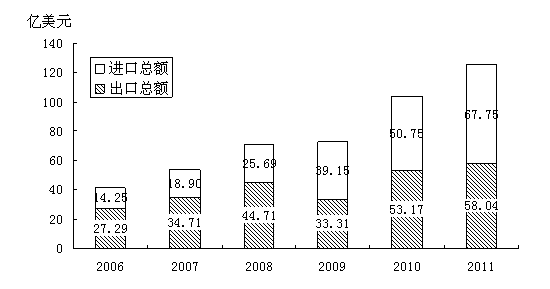 全年进出口总额125.79亿美元,比上年增长21.0%。其中,出口58.04亿美元,增长9.2%;进口67.75亿美元,增长33.5%。