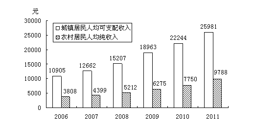 图8 2006-2011年城乡居民收入