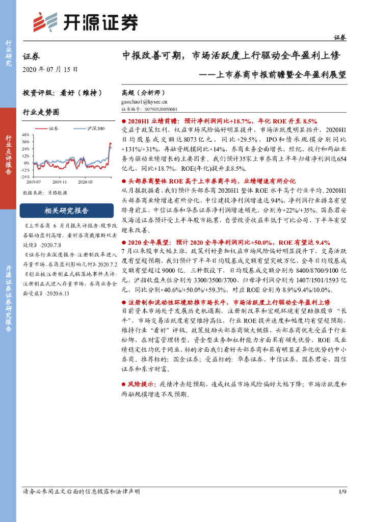 开源证券:上市券商中报前瞻暨全年盈利展望:中报改善可期,市场活跃度上行驱动全年盈利上修.pdf