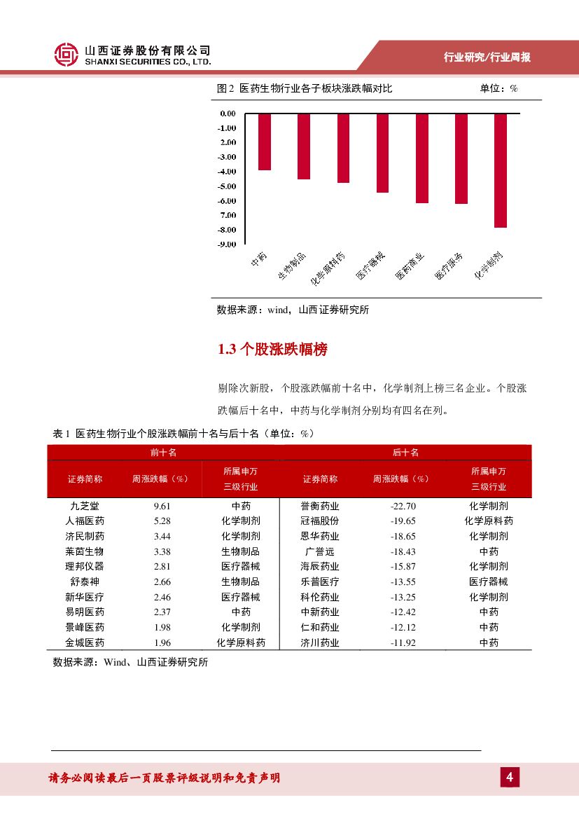 山西证券:医药生物行业周报:带量采购引发市场担忧,持续关注创新龙头.pdf