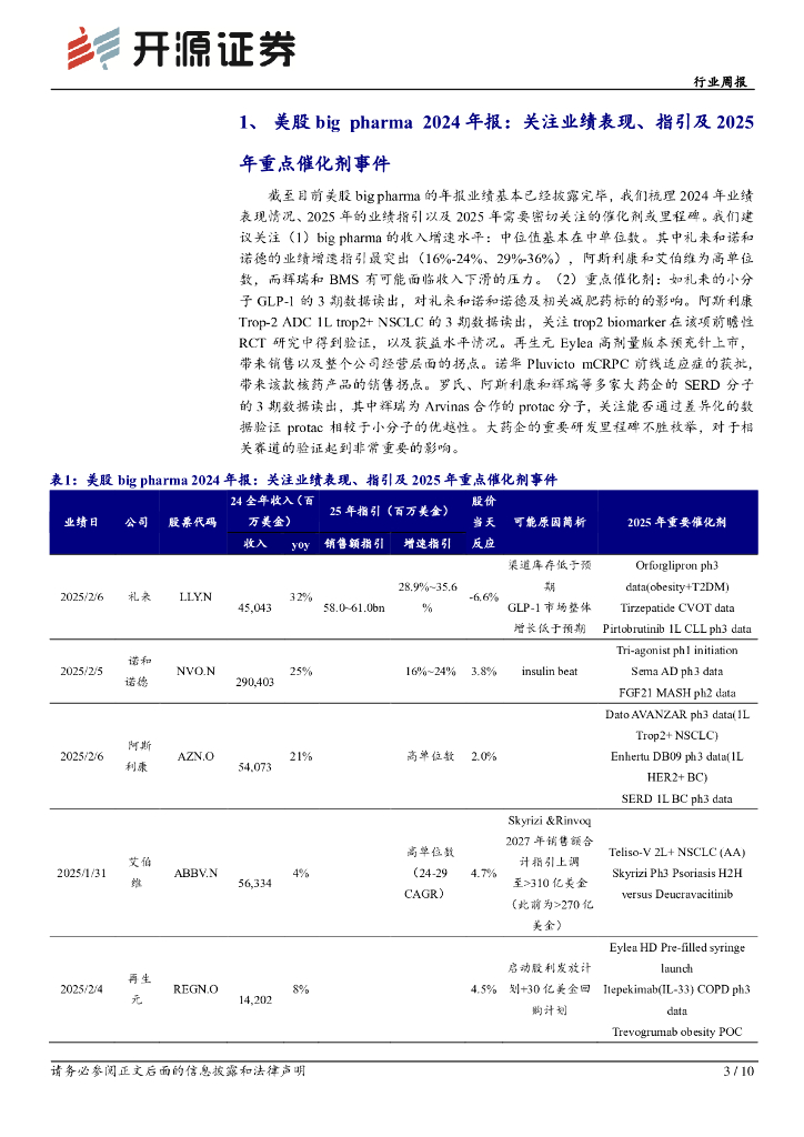 开源证券:医药生物行业周报:美股bigpharma2024年报:关注业绩表现、指引及2025年重点催化剂事件.pdf