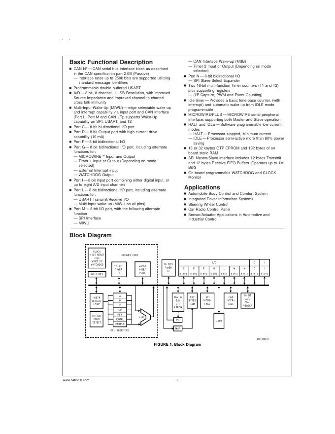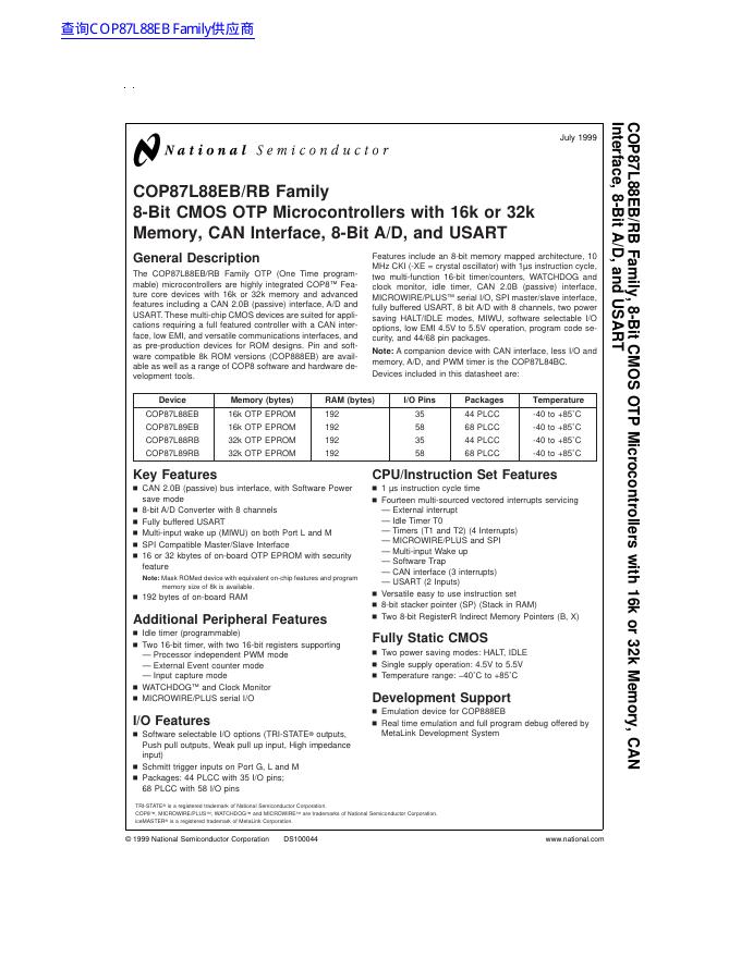 National semiconductor COP87L88EB/RB Family 8-Bit CMOS OTP Microcontrollers 数据手册(1).pdf