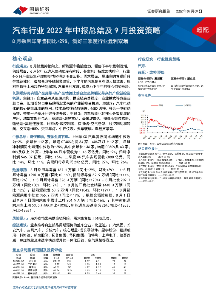 国信证券:汽车行业2022年中报总结及9月投资策略:8月乘用车零售同比+29%,看好三季度行业量利双增.pdf