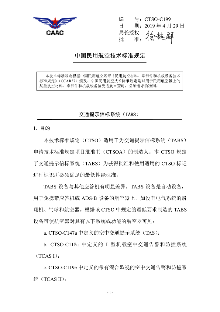 CTSO-C199 《交通提示信标系统(TABS)》.pdf